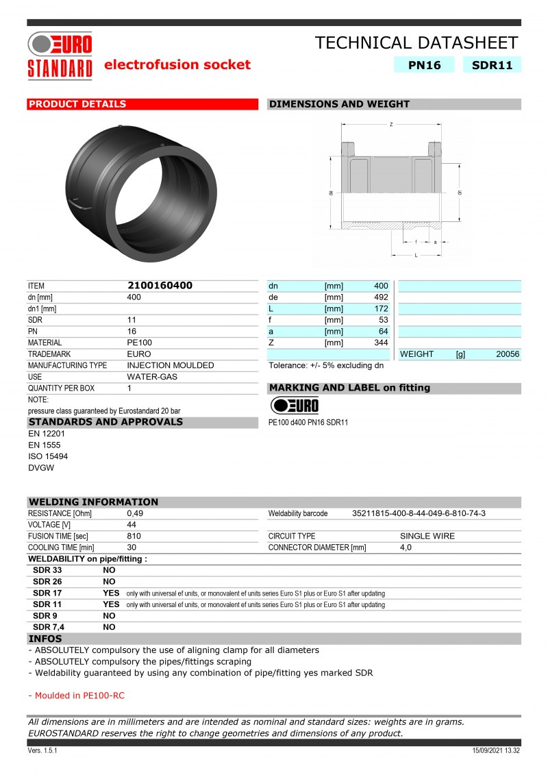 Compatible con soldadura tope/tope: garantizado el mismo espesor PE diferentes.