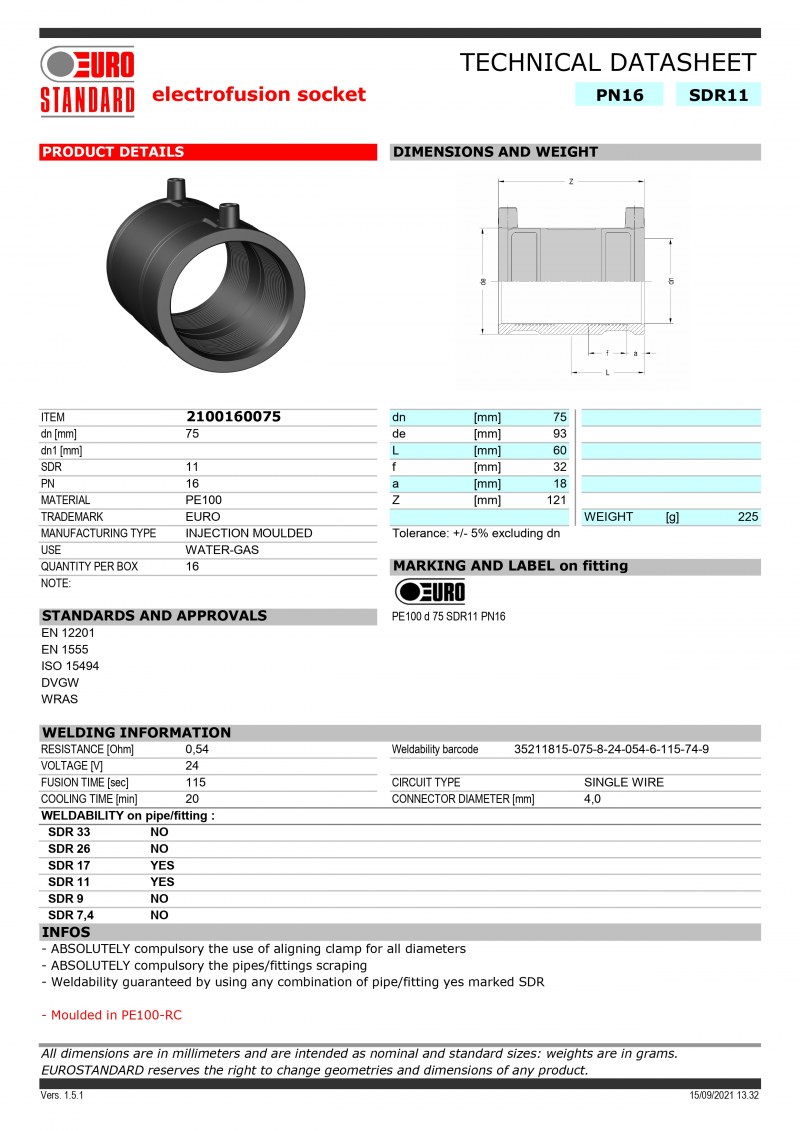 Compatible con soldadura tope/tope: garantizado el mismo espesor PE diferentes.