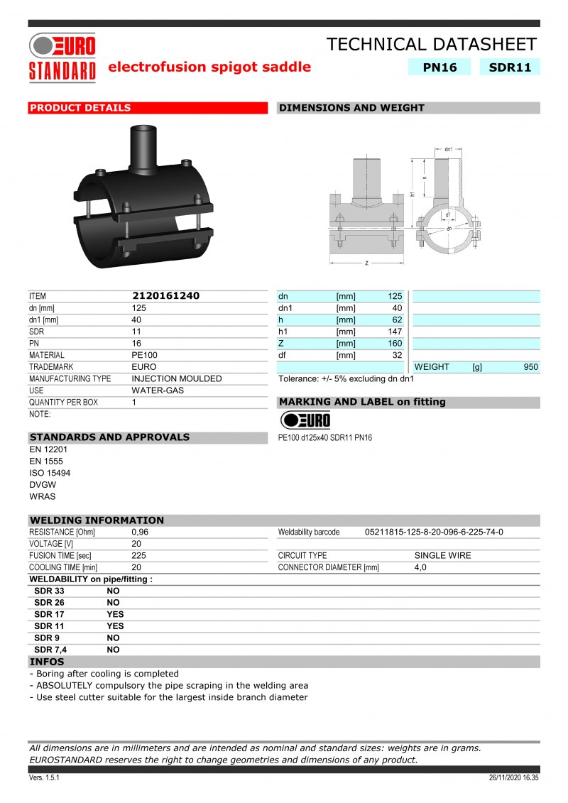 SPIGOT SADDLE MONOBLOCK PN: 16, PE:100, D:125x40