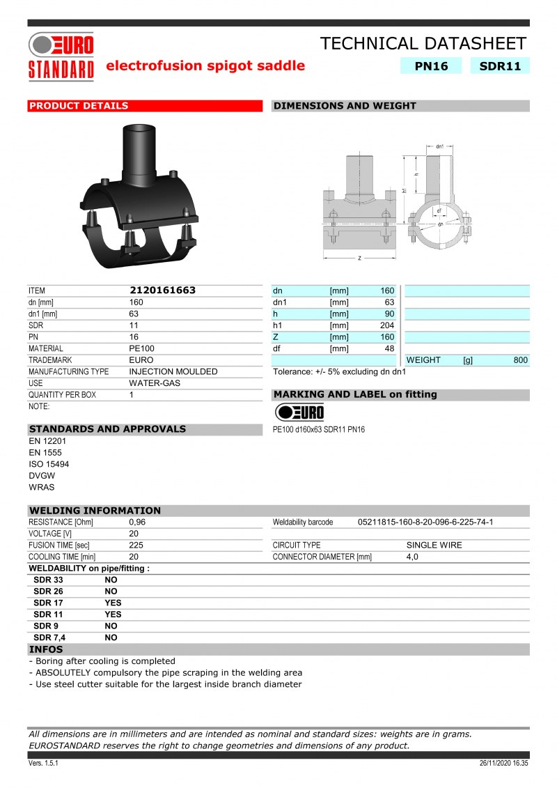 SPIGOT SADDLE MONOBLOCK PN: 16, PE:100, D:160x63