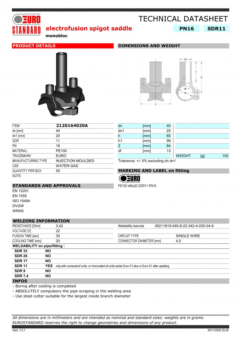 SPIGOT SADDLE MONOBLOCK PN: 16, PE:100, D:40x20