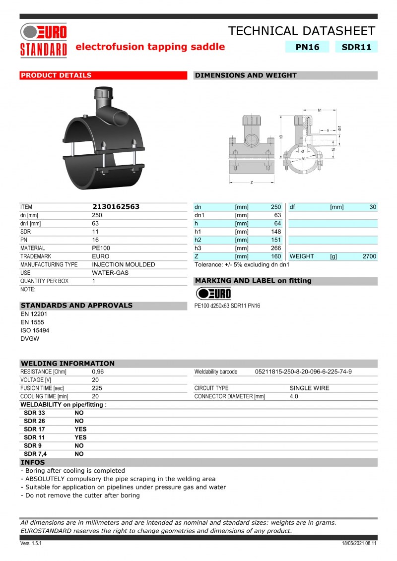 TAPPING TEE PN: 16, PE:100, D:250x63