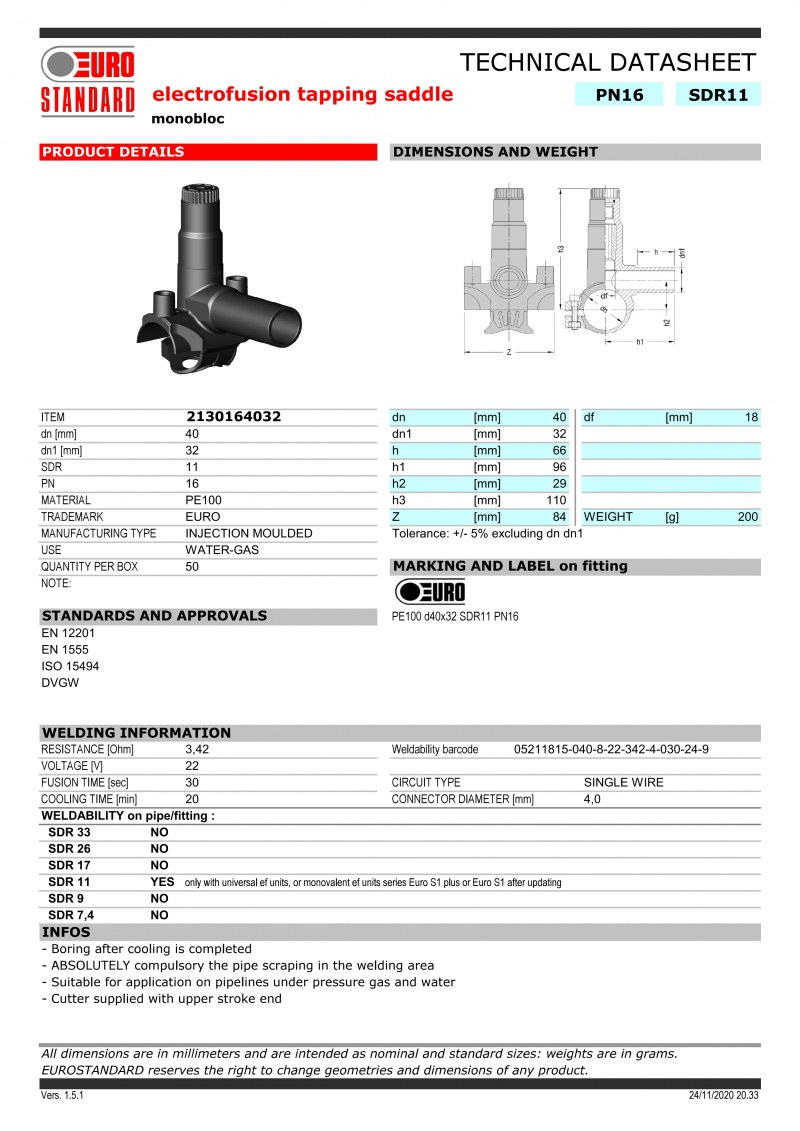 TAPPING TEE PN: 16, PE:100, D:40x32