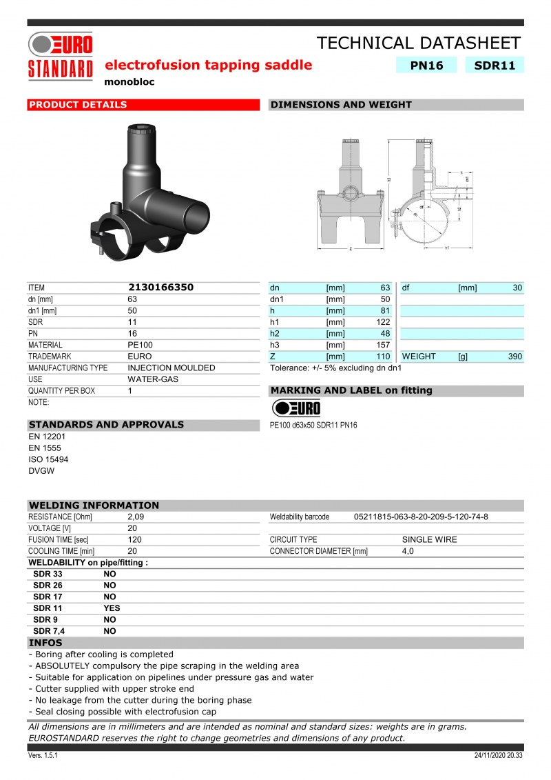TAPPING TEE PN: 16, PE:100, D:63x50