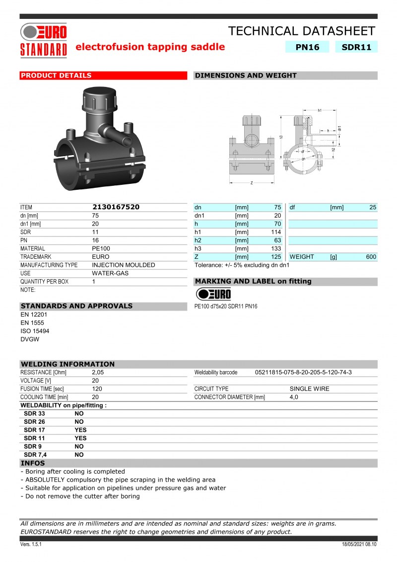 TAPPING TEE PN: 16, PE:100, D:75x20