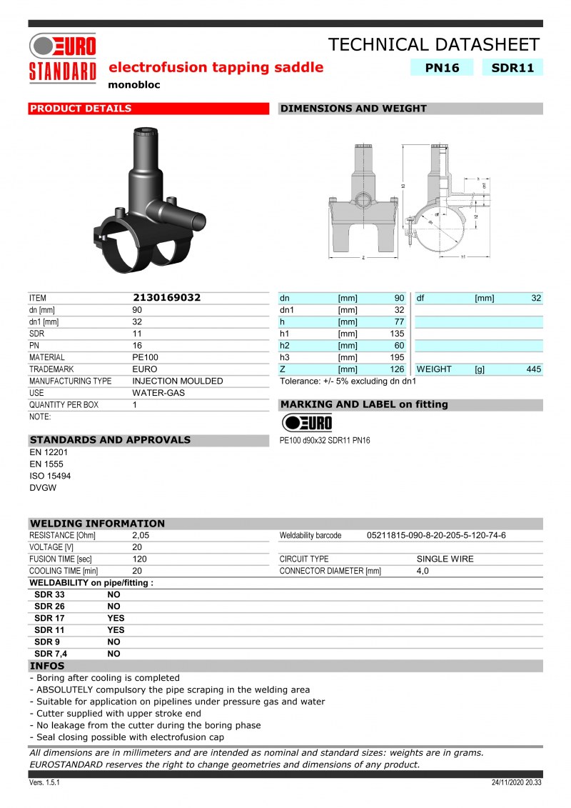 TAPPING TEE PN: 16, PE:100, D:90x32