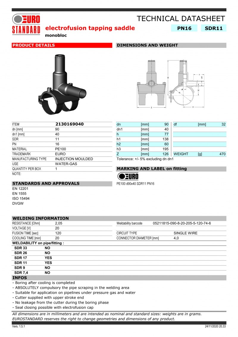 TAPPING TEE PN: 16, PE:100, D:90x40
