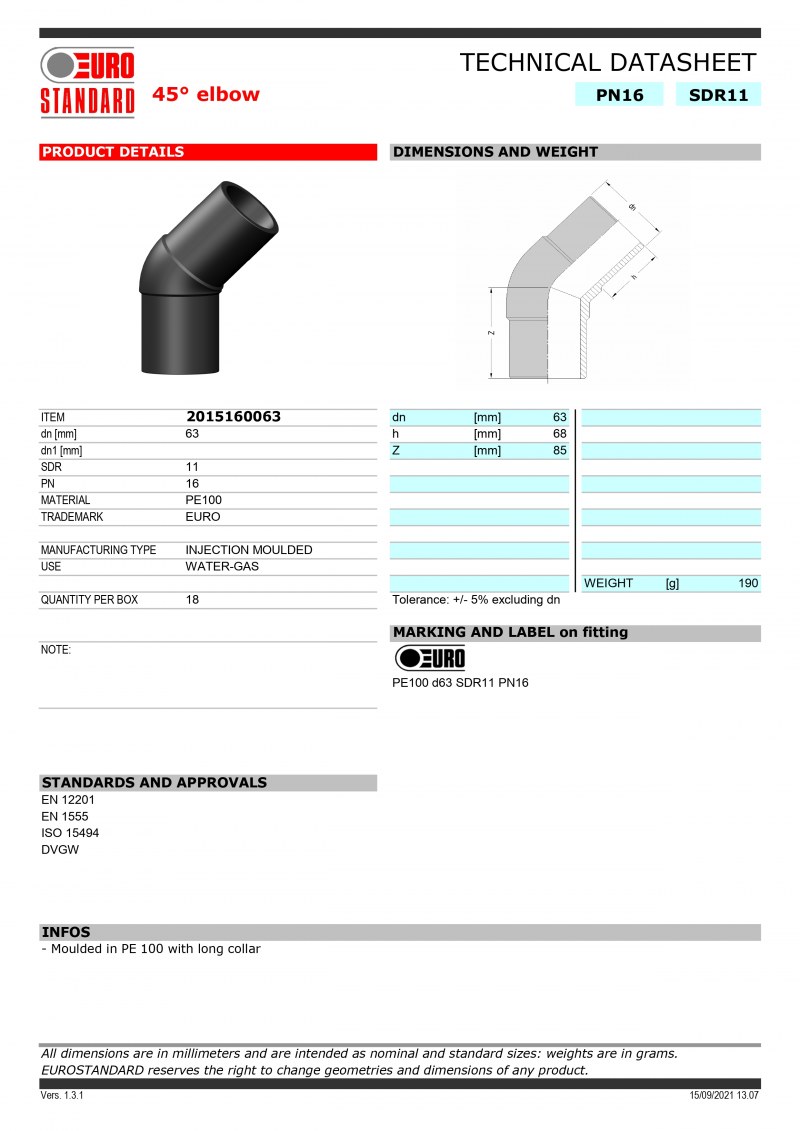 CODO 45º T.F. PN: 16, PE:100, D:63