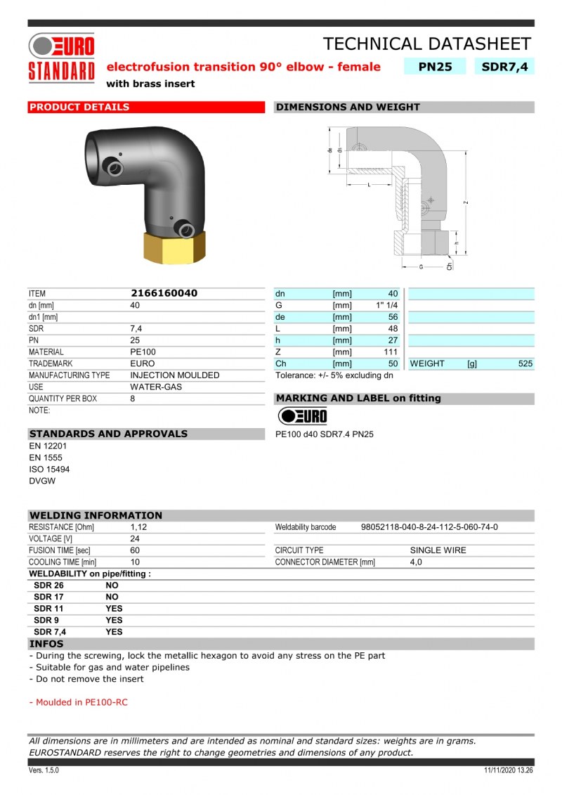 CODO 90º TRANSICION H.I. PN: 16, PE:100, D:40x1 1/4
