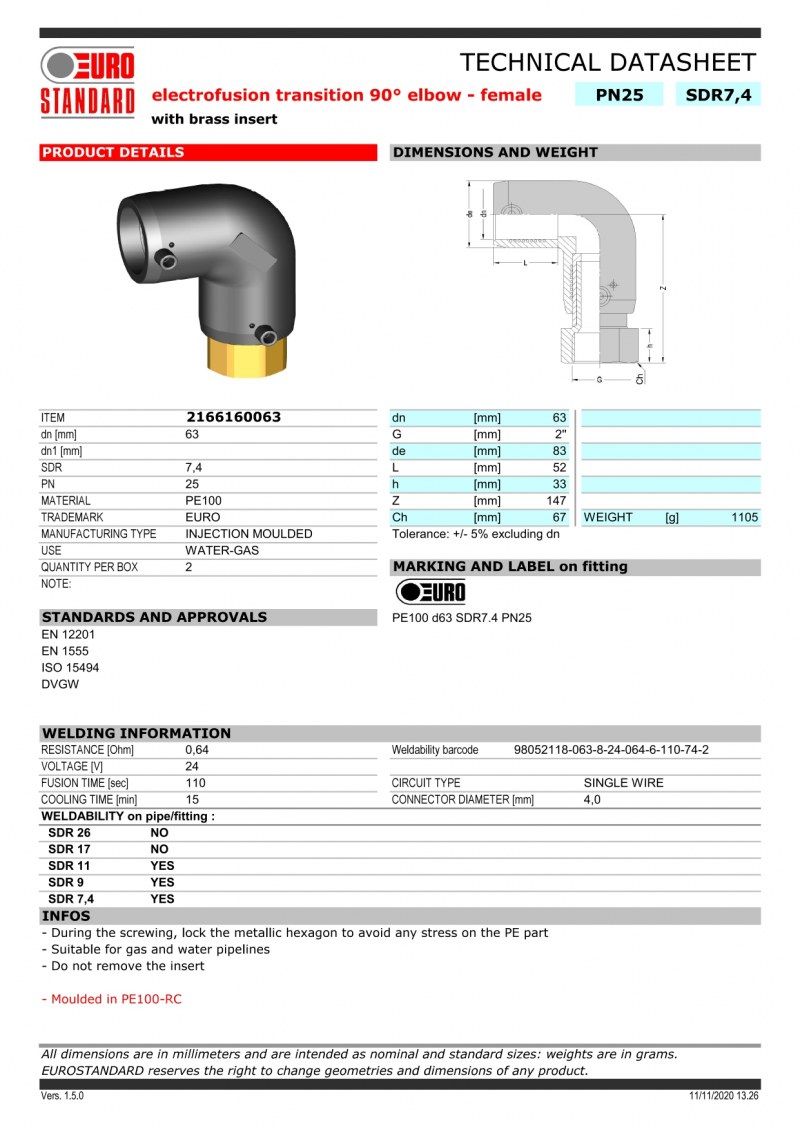 CODO 90º TRANSICION H.I. PN: 16, PE:100, D:63x2
