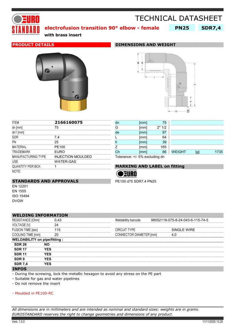 CODO 90º TRANSICION H.I. PN: 16, PE:100, D:75x2 1/2